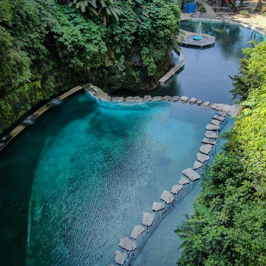 El Salvador's most beloved balneario since 1957. Four natural pools of cold, crystal-clear volcanic water, with the iconic emerald-green pool as the postcard image. It was the setting for the Miss Universe 1975 pageant. Accepts debit and credit cards. "Los Chorros is pure nostalgia for any Salvadoran over 30. It's the balneario where your parents brought you as a child. The cold volcanic water, the moss-covered rocks, the green color of the main pool — it's impossible not to fall in love with it."
